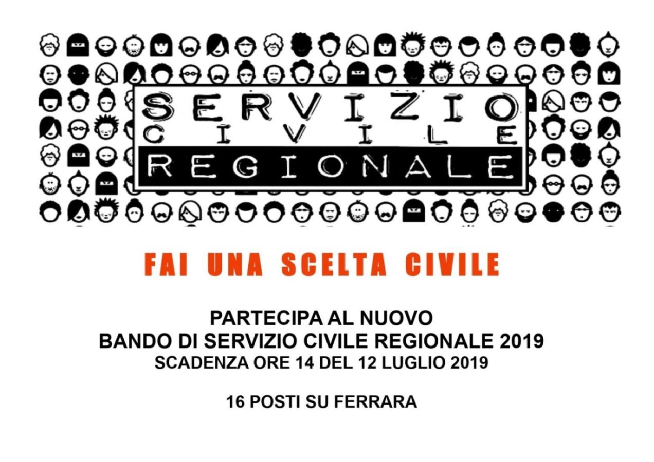 Oggi, 12 giugno 2019, la Regione Emilia Romagna ha indetto un Bando per la selezione di 16 volontari da impiegare nei progetti di Servizio Civile Regionale della Provincia di Ferrara. COSA ASPETTI? CANDIDATI!!